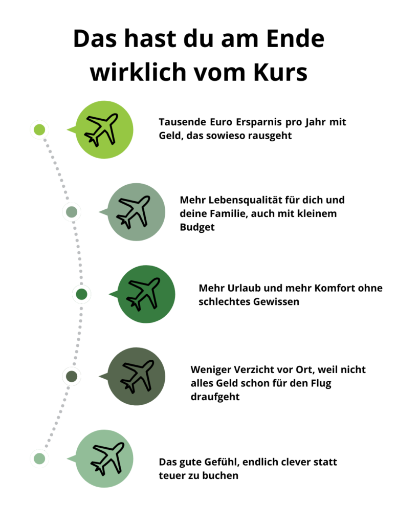 Du bekommst alle Tools, Strategien und Tipps an die Hand, um aus einem normalen Urlaub ein echtes Reiseerlebnis zu machen und dabei cleverer statt teurer zu buchen
