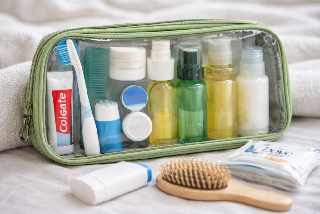 Hygiene und Frische sind die heimlichen Helden: Zahnbürste plus Zahnputztabletten oder kleine Zahnpasta, Erfrischungstücher, Deostick und ein bisschen Hautpflege wie Gesichtscreme, Lippenpflege, Handcreme und eventuell kühlendes Augengel. Wenn du Kontaktlinsen trägst, sind Brille und Augentropfen wirklich Gold wert, weil Kabinenluft die Augen gern trockenlegt.