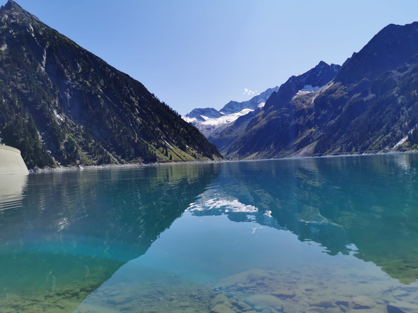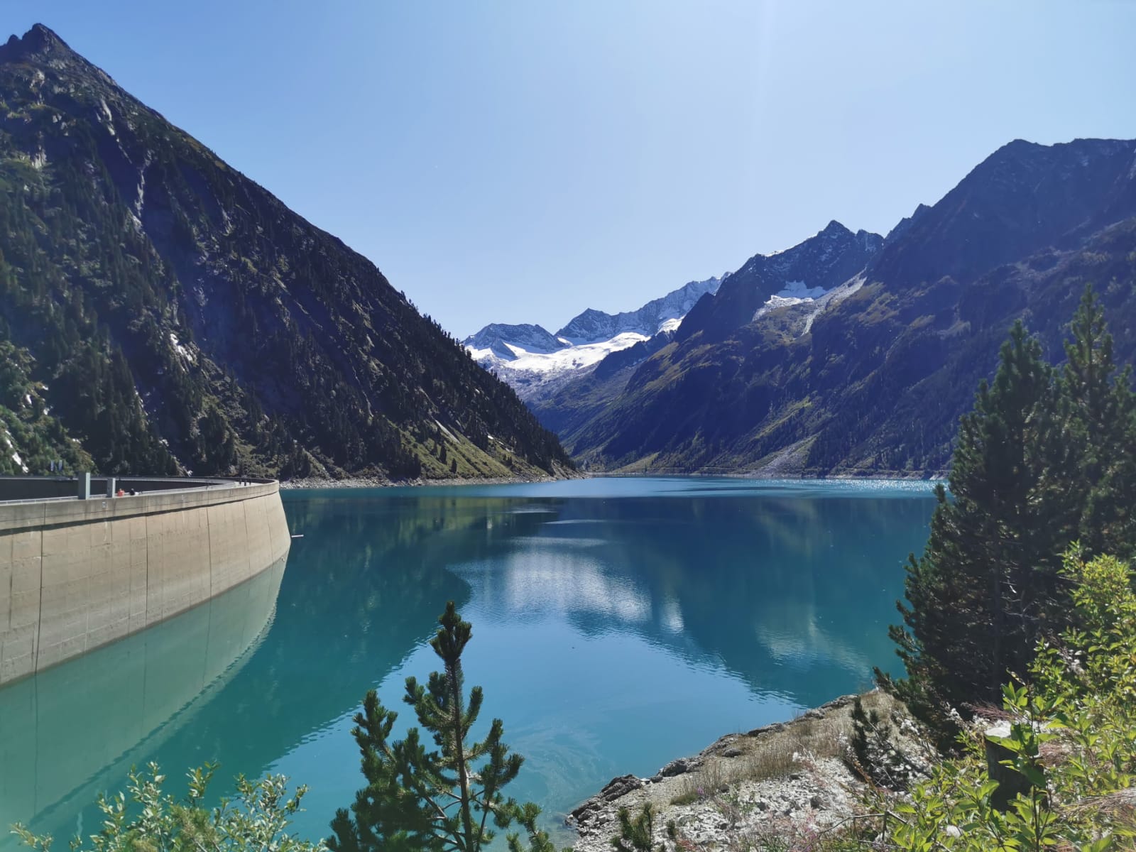 Schon die Anfahrt zur Olpererhütte macht klar, dass diese Tour kein kleiner Sonntagsspaziergang mit bisschen Aussicht wird. Je näher du dem Schlegeis Stausee kommst, desto mehr zieht die Bergkulisse an und spätestens dann ist klar: Das hier wird richtig gut. Oder richtig anstrengend. Wahrscheinlich beides.